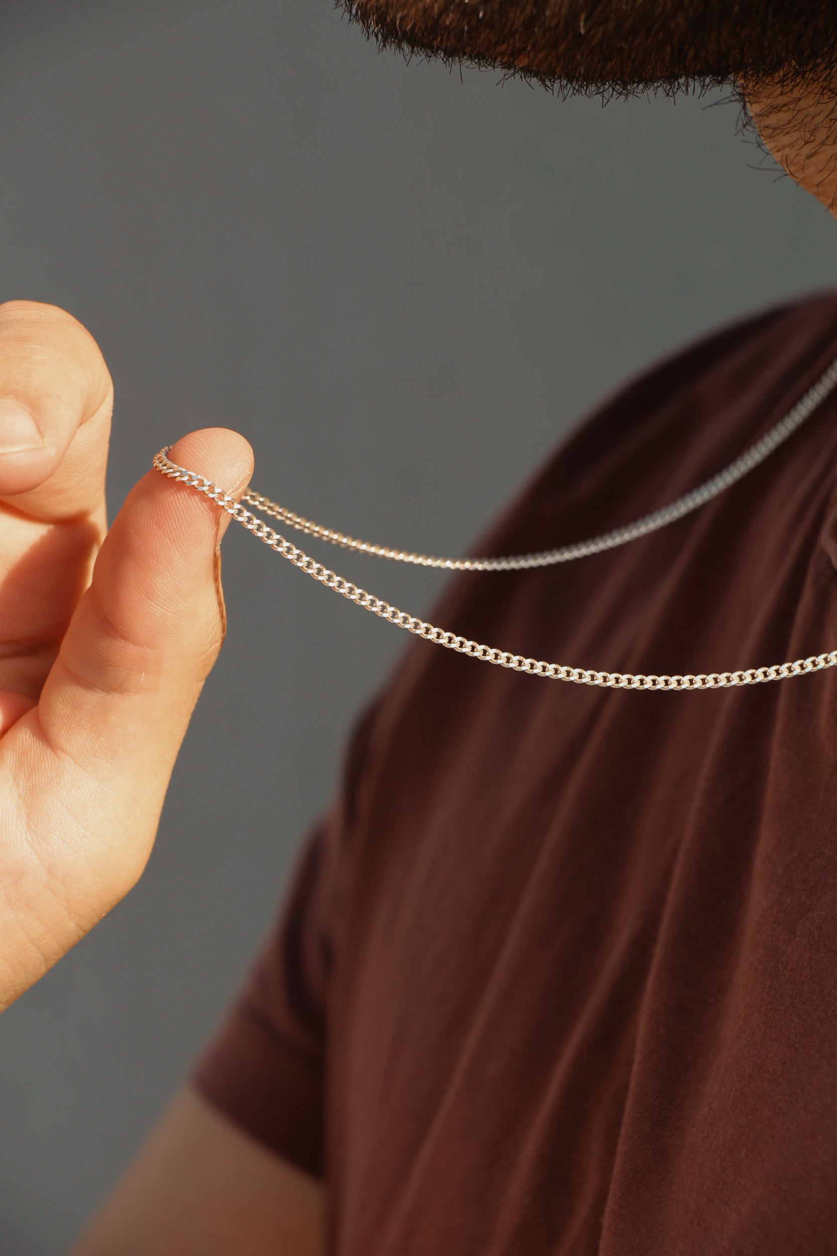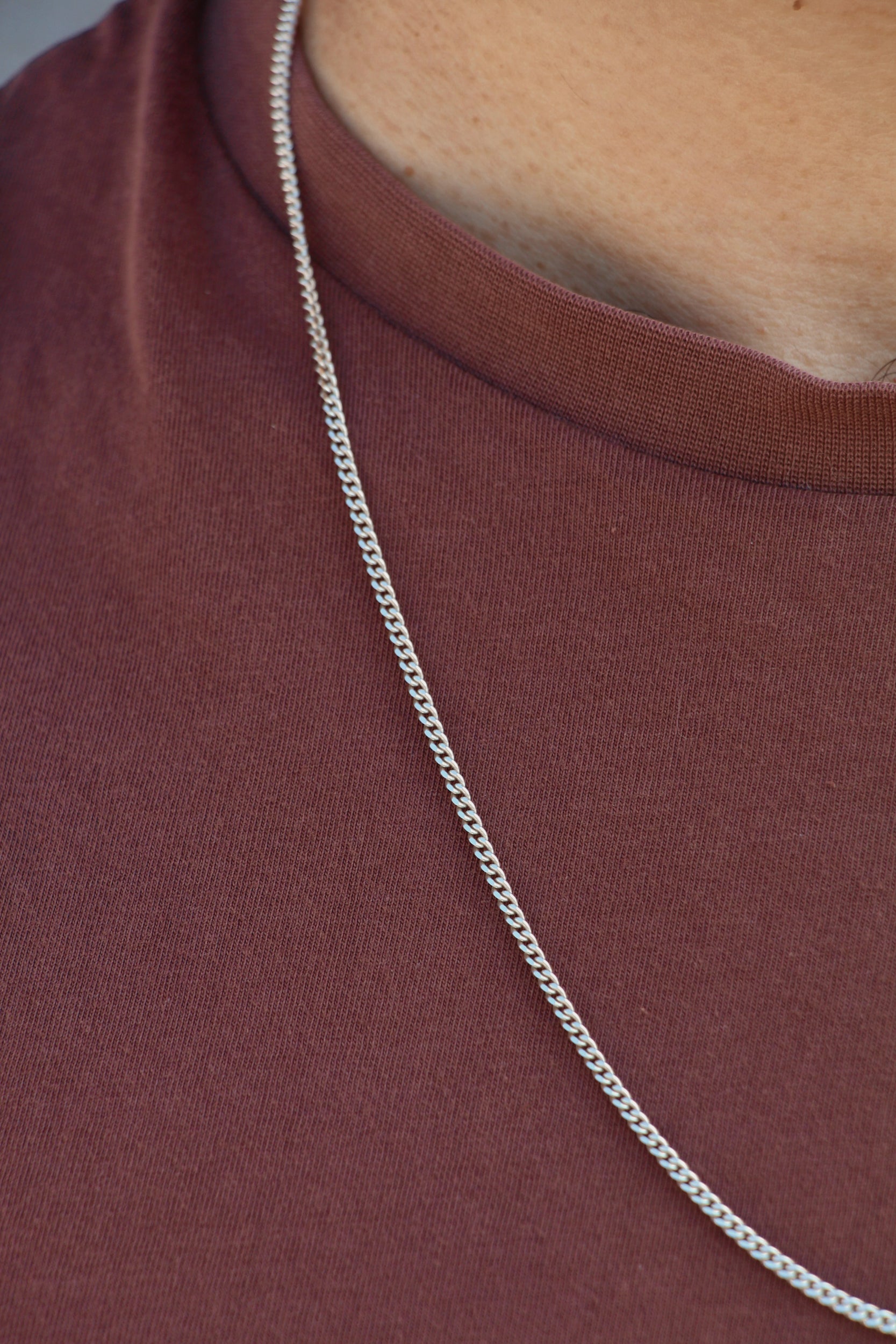 Weighty solid sterling silver mini curb link chain with a square lobster clasp.