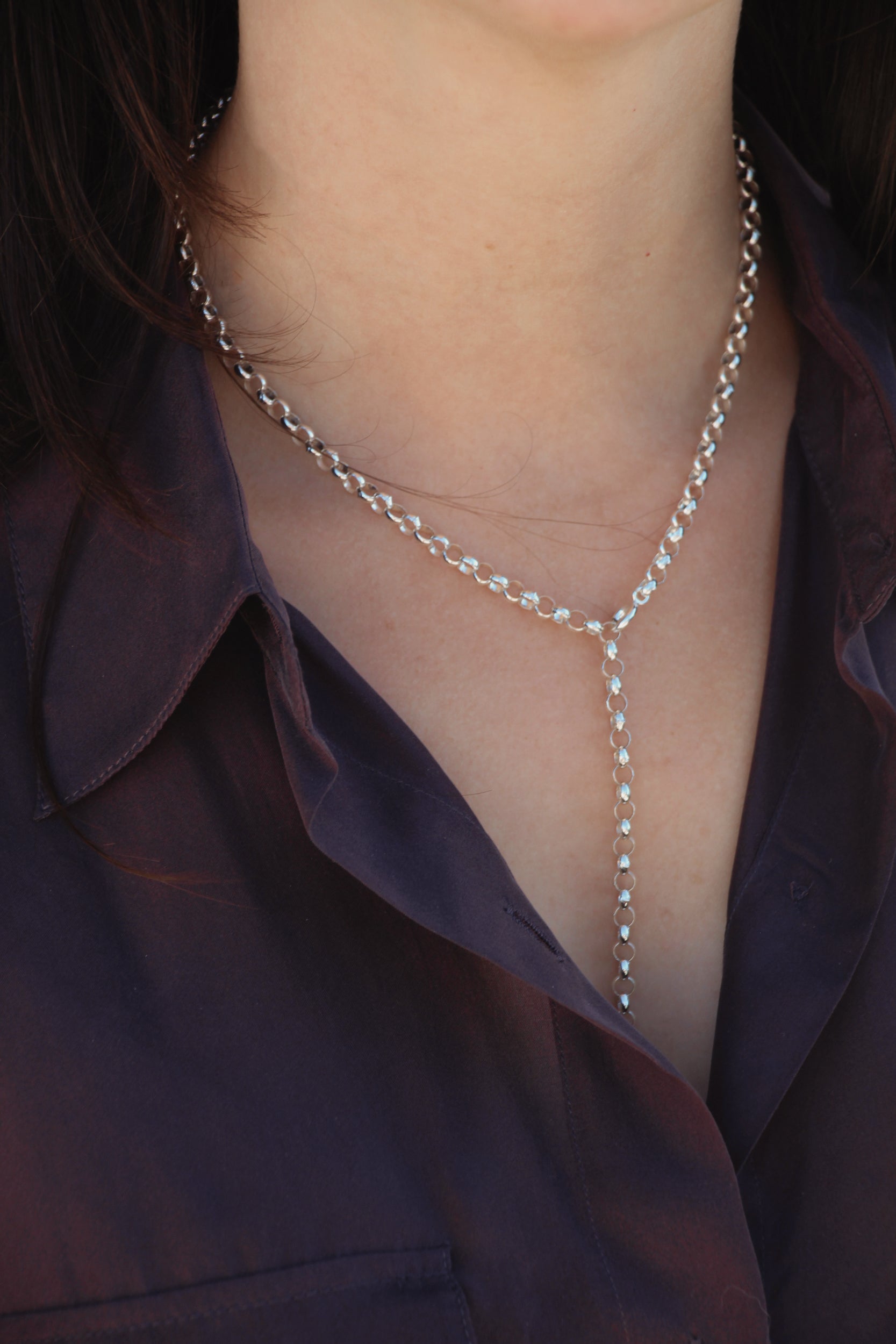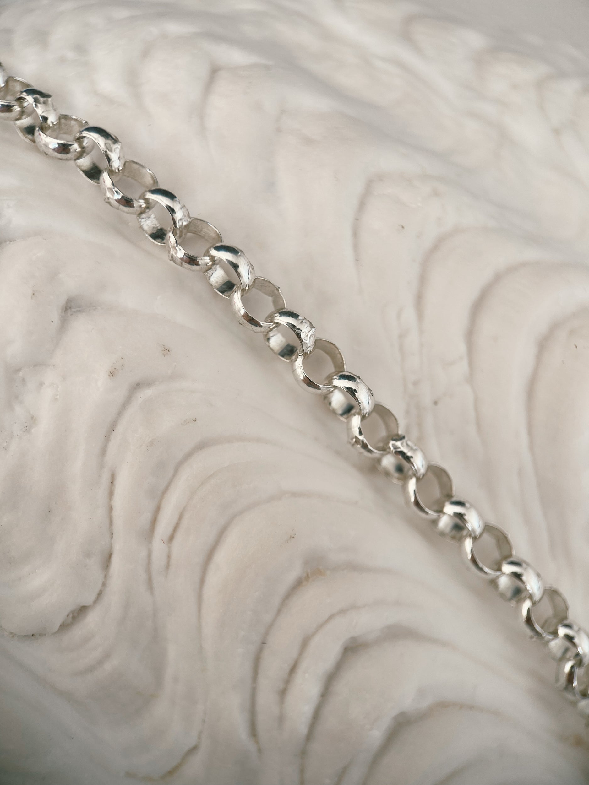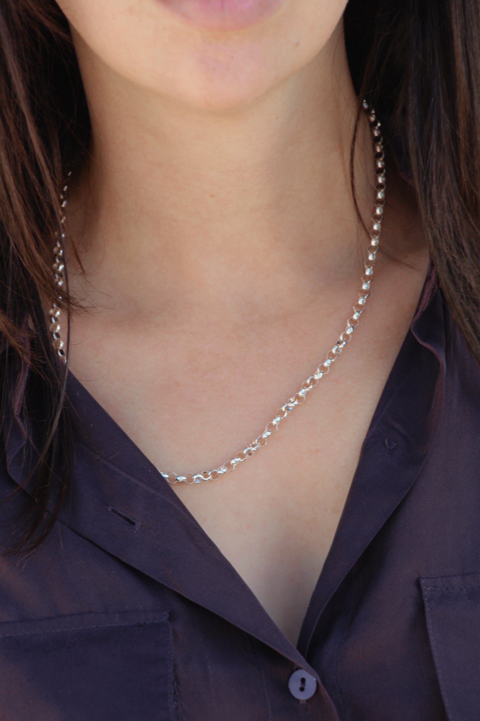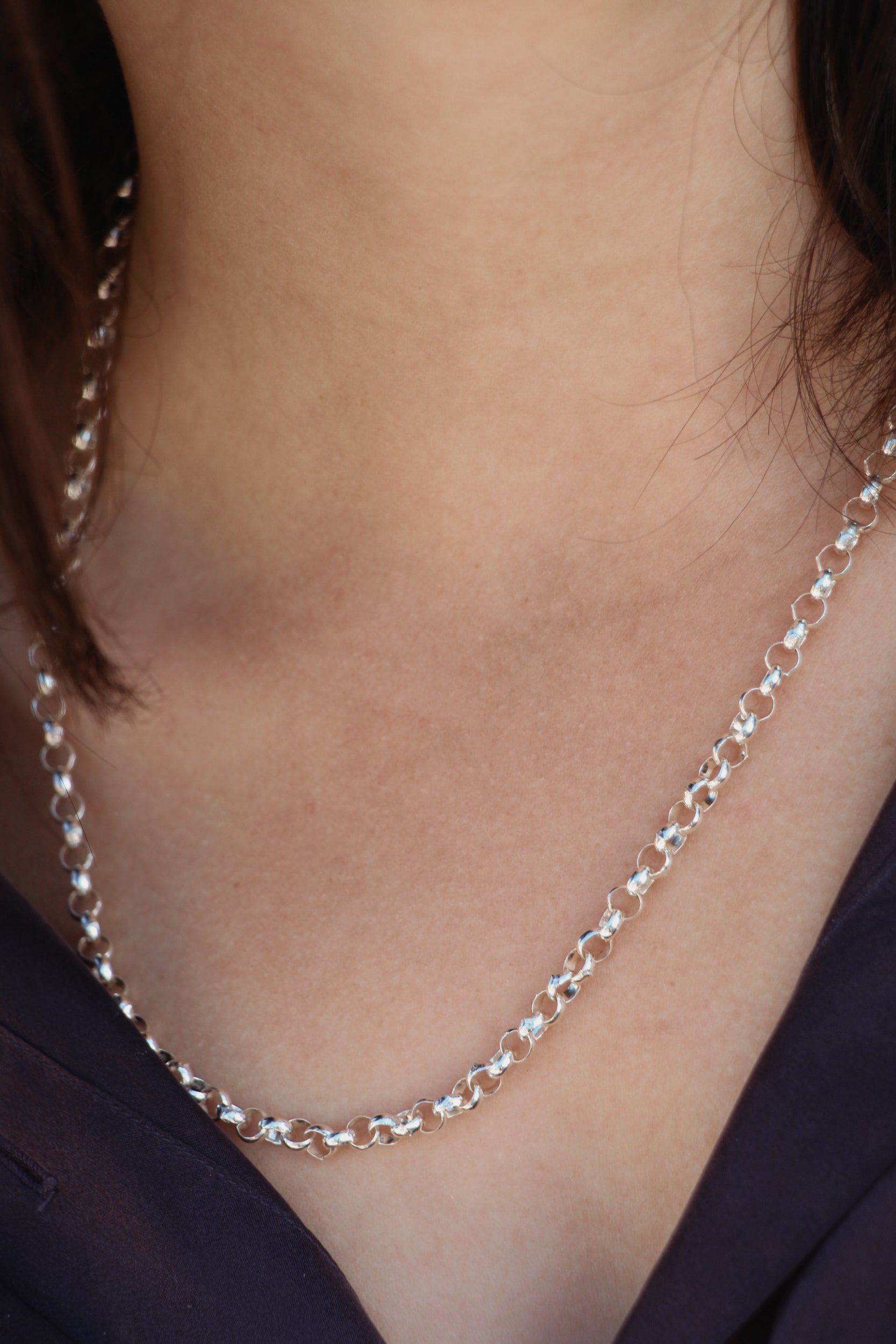 A satisfyingly round midi rolo chain with a round spring clasp in a perfect length to play with various ways to wear it.