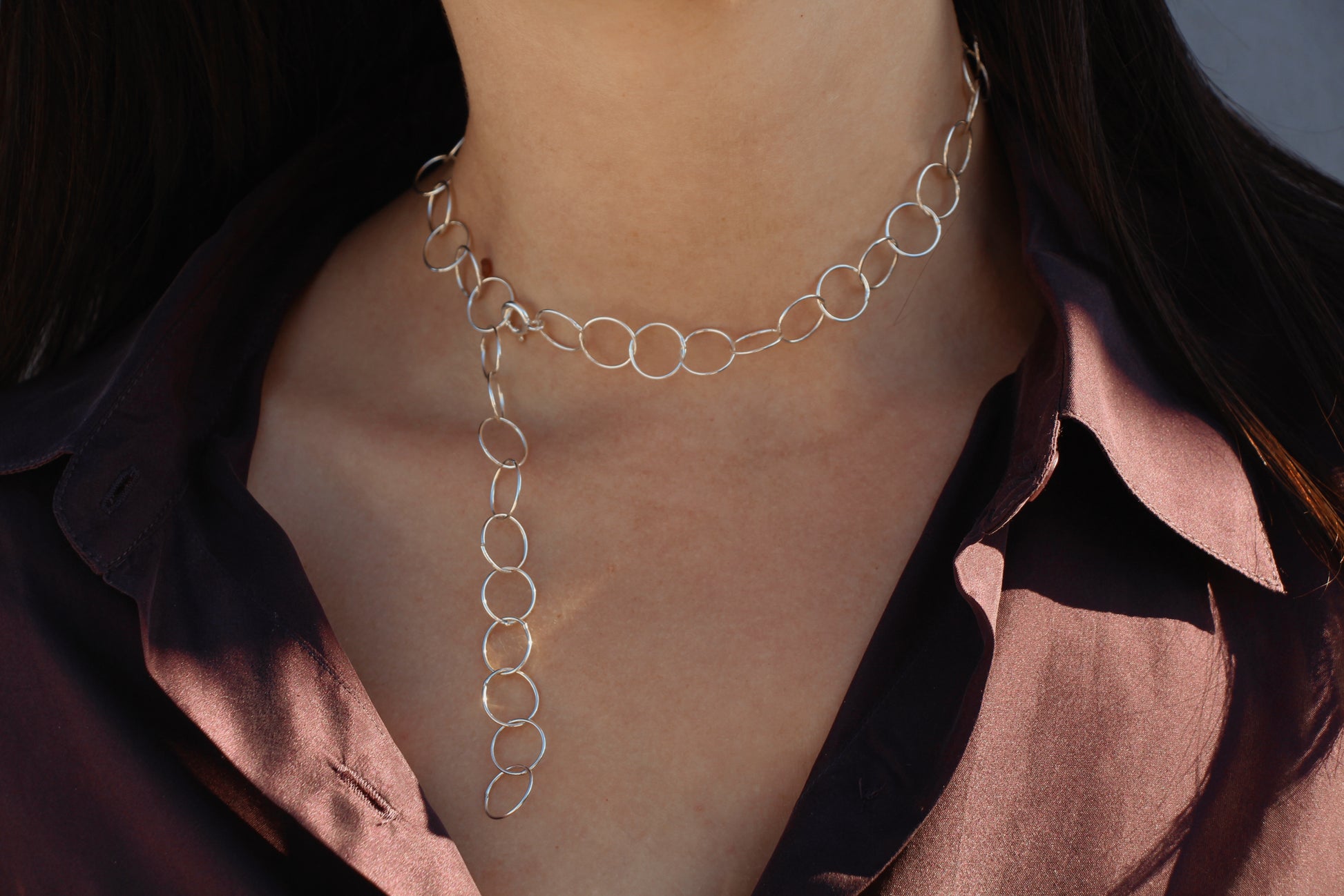 Round loops, smooth and lightweight cable chain with toggle closure. Wear it as a relaxed chain or as a chocker